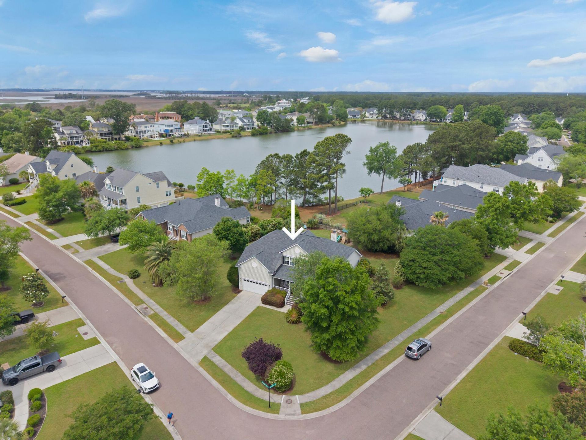 Sitting on the largest lot in the subdivision - a double, corner parcel with a water view - this home is in the coveted Isles section of Rivertowne Country Club. It offers the space, privacy, and backyard that discerning buyers dream about. Step inside to appreciate the thoughtful design that places the primary suite on the first floor, three bedrooms upstairs, and a flowing layout bathed in natural light - all with serene water views that serve as a backdrop to everyday living.For those who love their vehicles, toys, or simply crave extra storage, the rare three-car garage is a standout feature in this community. For outdoor enthusiasts, this home offers...a fenced backyard with mature blueberry and peach trees that bear delicious fruit each season, a screened porch, and a back deck that overlooks a 15-acre lake. Grab your golf cart and take a quick trip to Harris Teeter or neighborhood restaurants!Major capital improvements have already been done for you - a renovated kitchen (2022), a new roof (2022), a recently replaced HVAC system (2022), and a new water heater (2023) - so you can move in and enjoy without the worry of costly repairs on the horizon.Beyond your front door, you can enjoy the amenities of Rivertowne Country Club featuring an Arnold Palmer signature-designed golf course, an Olympic-sized pool, tennis courts, a clubhouse, walking trails, and a vibrant community atmosphere that makes every day feel like a retreat.With its unmatched lot size, water views, first-floor primary suite, three-car garage, and all major systems recently updated, 2799 Carolina Isle Drive is the perfect place to call home.